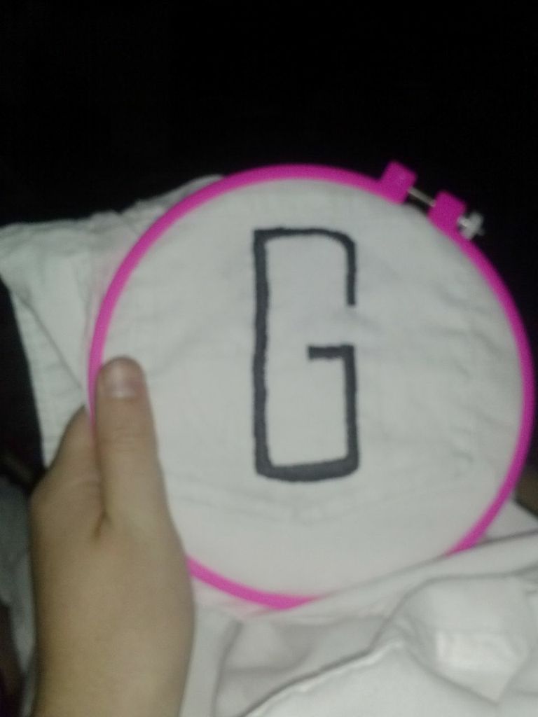 I started with a men's dress shirt that I got from Goodwill in great condition for $4. My grandmother gave me all of her embroidery tools so I went to work! I washed the shirt and ironed the pocket so there were no wrinkles! Then you have to cut a piece of backing that you can get at any craft store. Then I took a cup and traced the circle on the shirt pocket and drew in my initials. Then I attached my hoop and got to work!